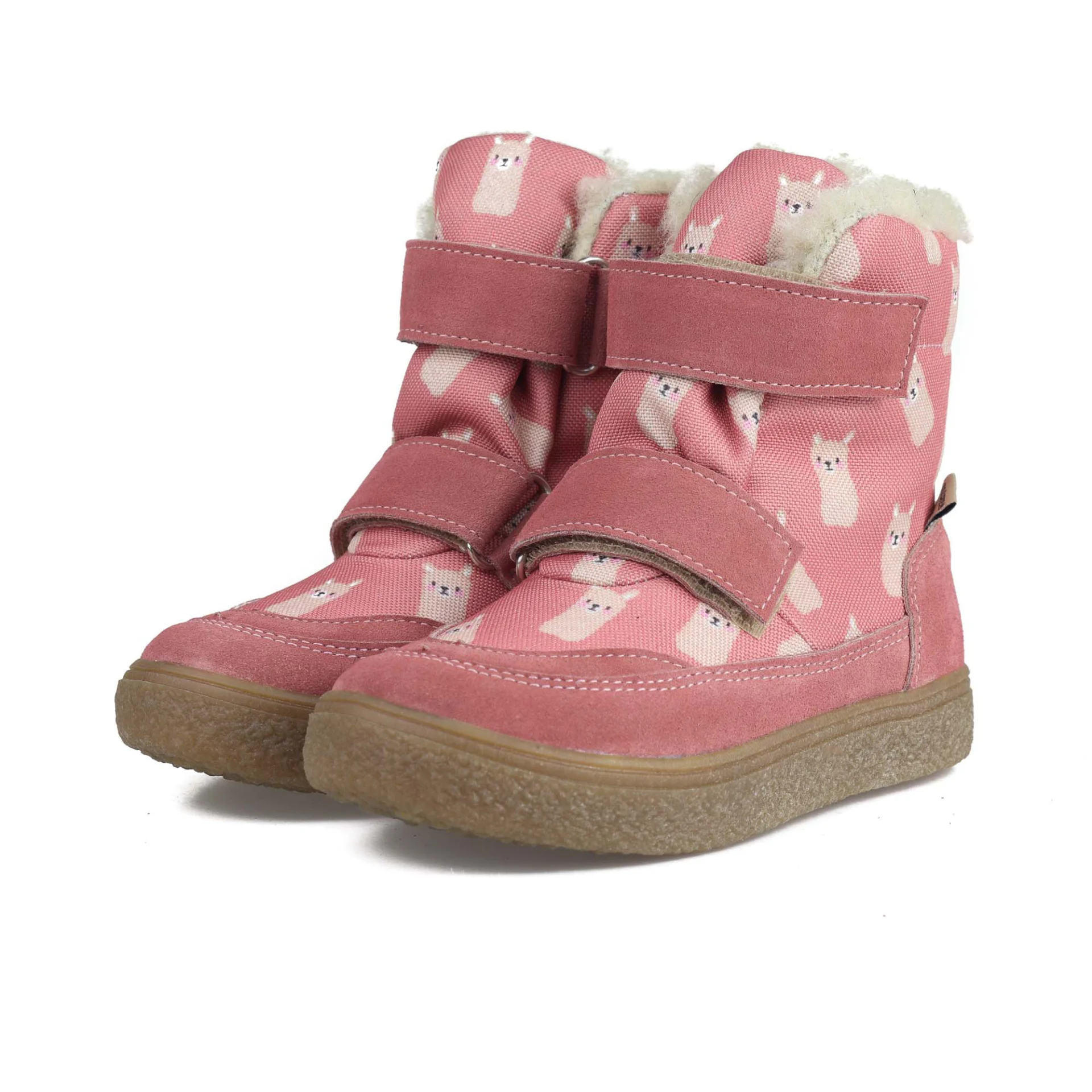 Wodoodporne trzewiki zimowe z membraną. Wykonane z wysokojakościowego materiału tekstylnego oraz skóry naturalnej welurowej. Wnętrze obuwia to 100% wełna oraz wodoodporna membrana. Trzewiki zapinane są na rzepy. Komfortowa i ocieplana wkładka z warstwą termoizolacyjną. Dzięki usztywnianej pięcie i elastycznej podeszwie, wspierają prawidłowy rozwój stopy.